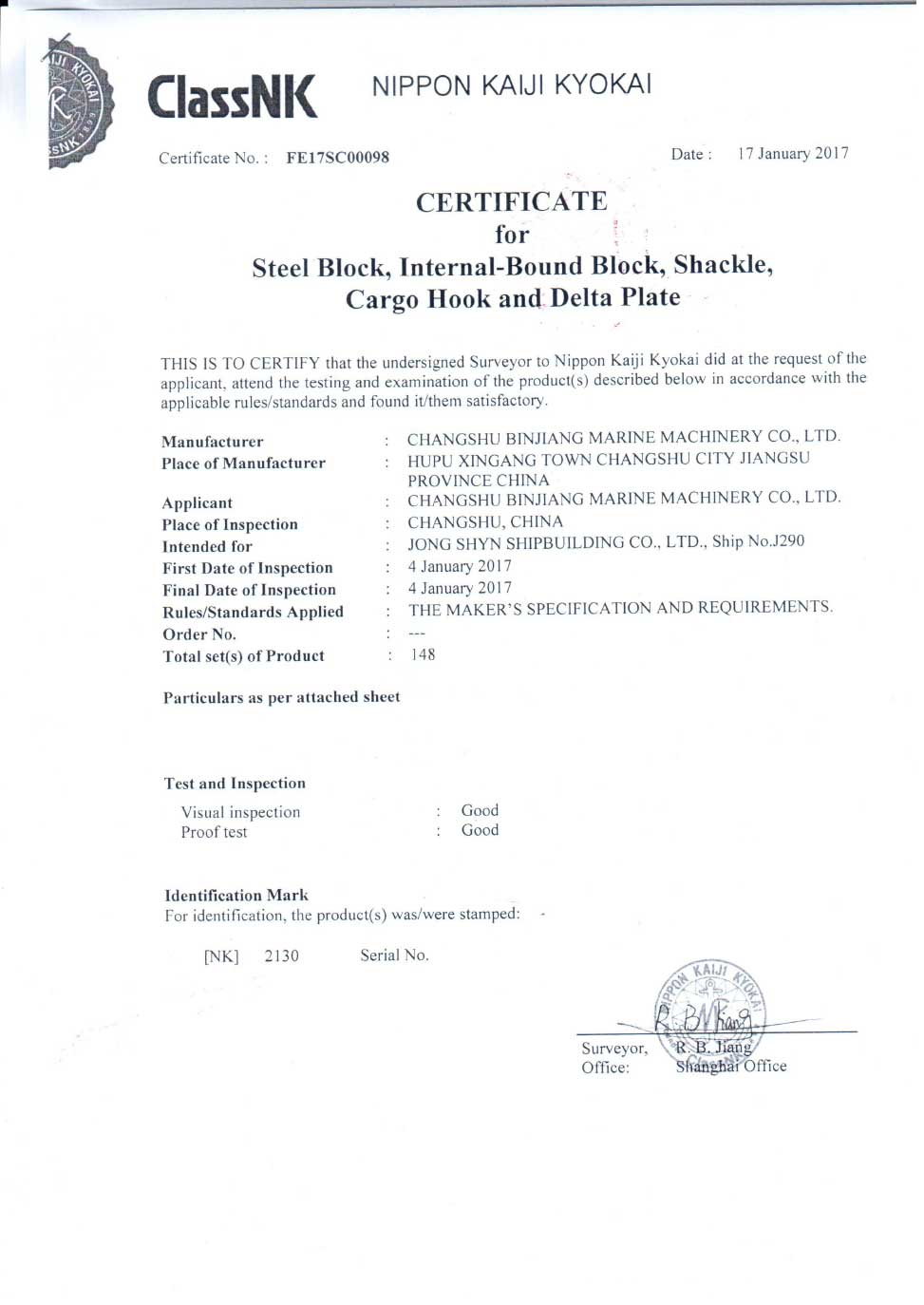 常熟市濱江船舶機(jī)械有限公司位于常熟沿江經(jīng)濟(jì)技術(shù)開發(fā)區(qū),是生產(chǎn)船舶舾裝配件:各種型式的船用起重滑車、卸扣、套環(huán)、吊鉤、轉(zhuǎn)環(huán)、索節(jié)、螺旋扣、帶纜樁、導(dǎo)纜滾輪、導(dǎo)纜器、貨倉(cāng)蓋零部件等產(chǎn)品的專業(yè)企業(yè)。